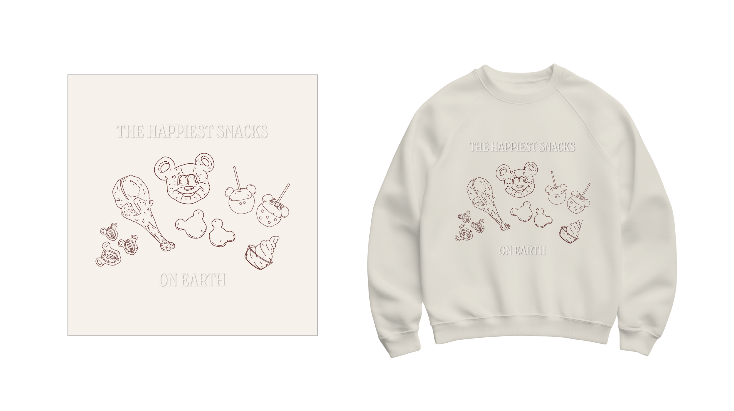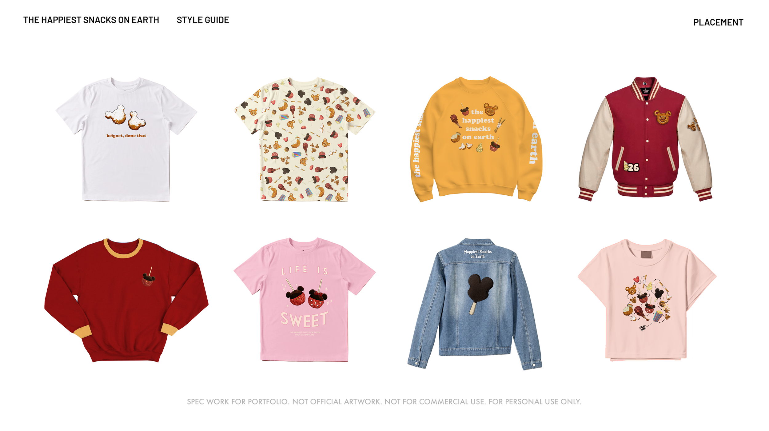 Created a hypothetical style guide from scratch, based on snacks found at Disneyland. Developed it from concept to full completion to see how artwork could exeute on product and merchandise such as shirts, water bottles, and other accessories.