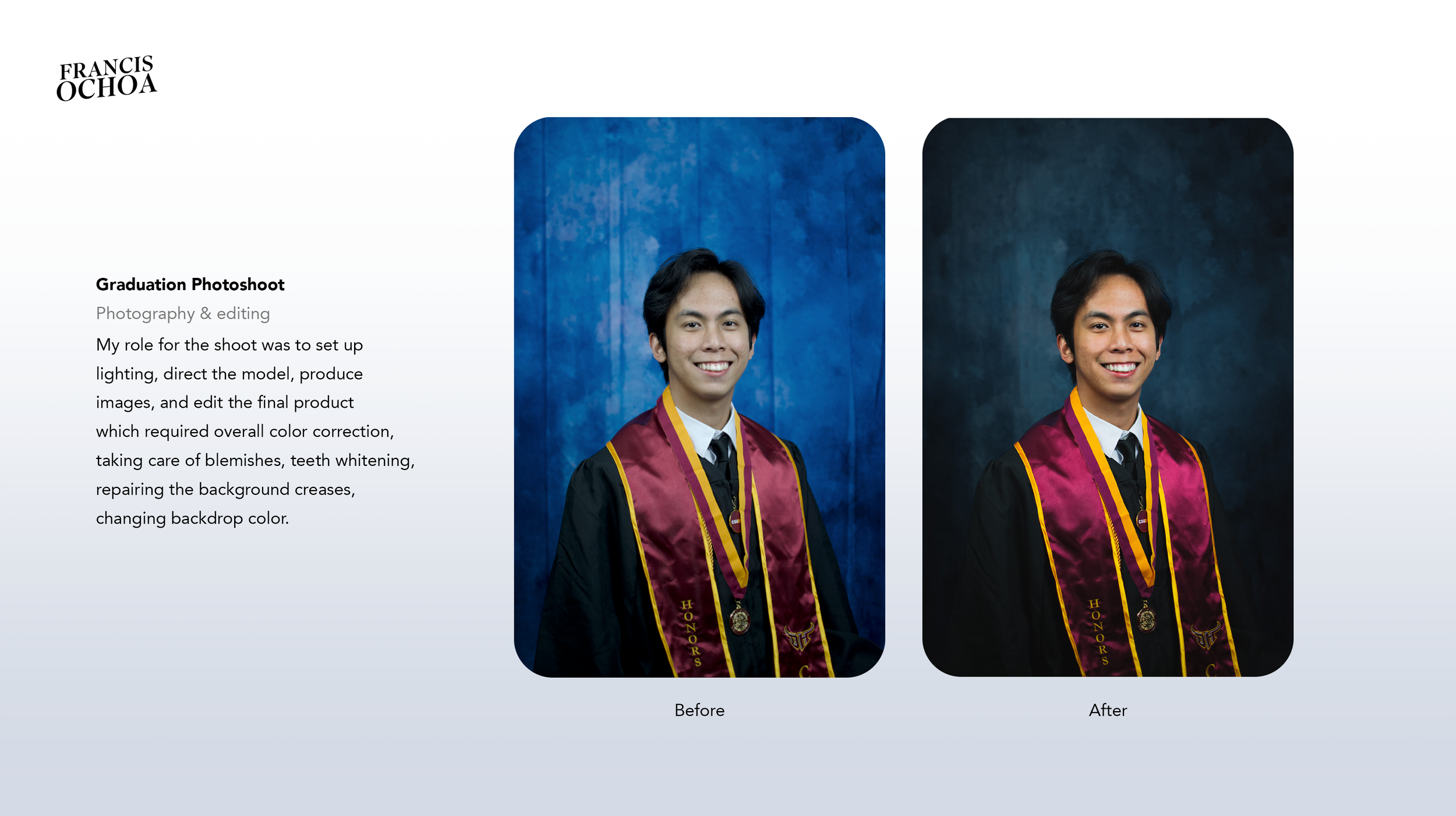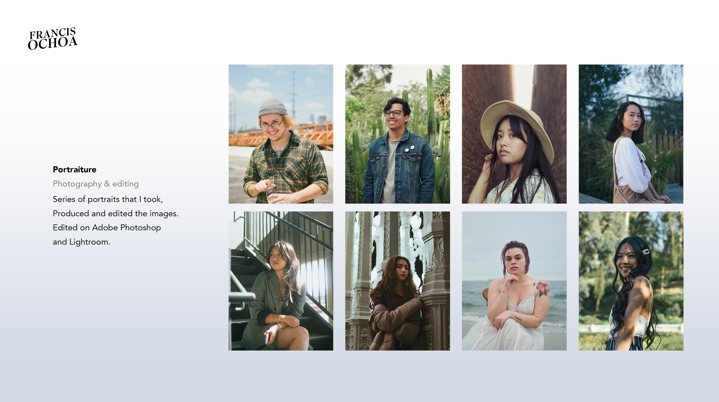 As a graphic designer, I believe the use of media such as photo and video is almost inherent to the role of an actual designer. Here are snippets of my work as both a photographer and videographer, along some of my work as a filmmaker (which includes photo editing, video editing, color grading). Fun fact: Photography is a lifelong passion of mine! I also shoot and develop my own film.