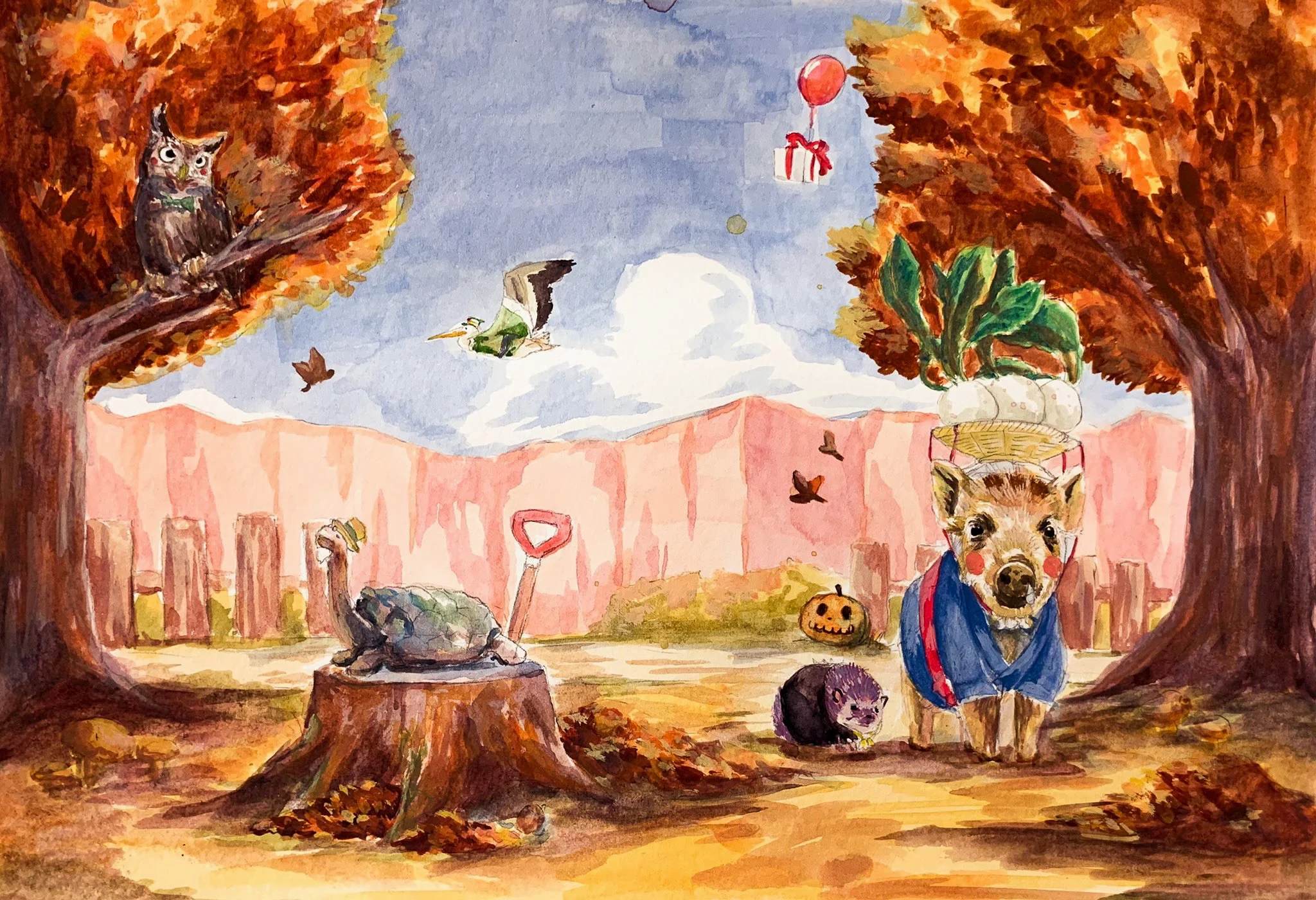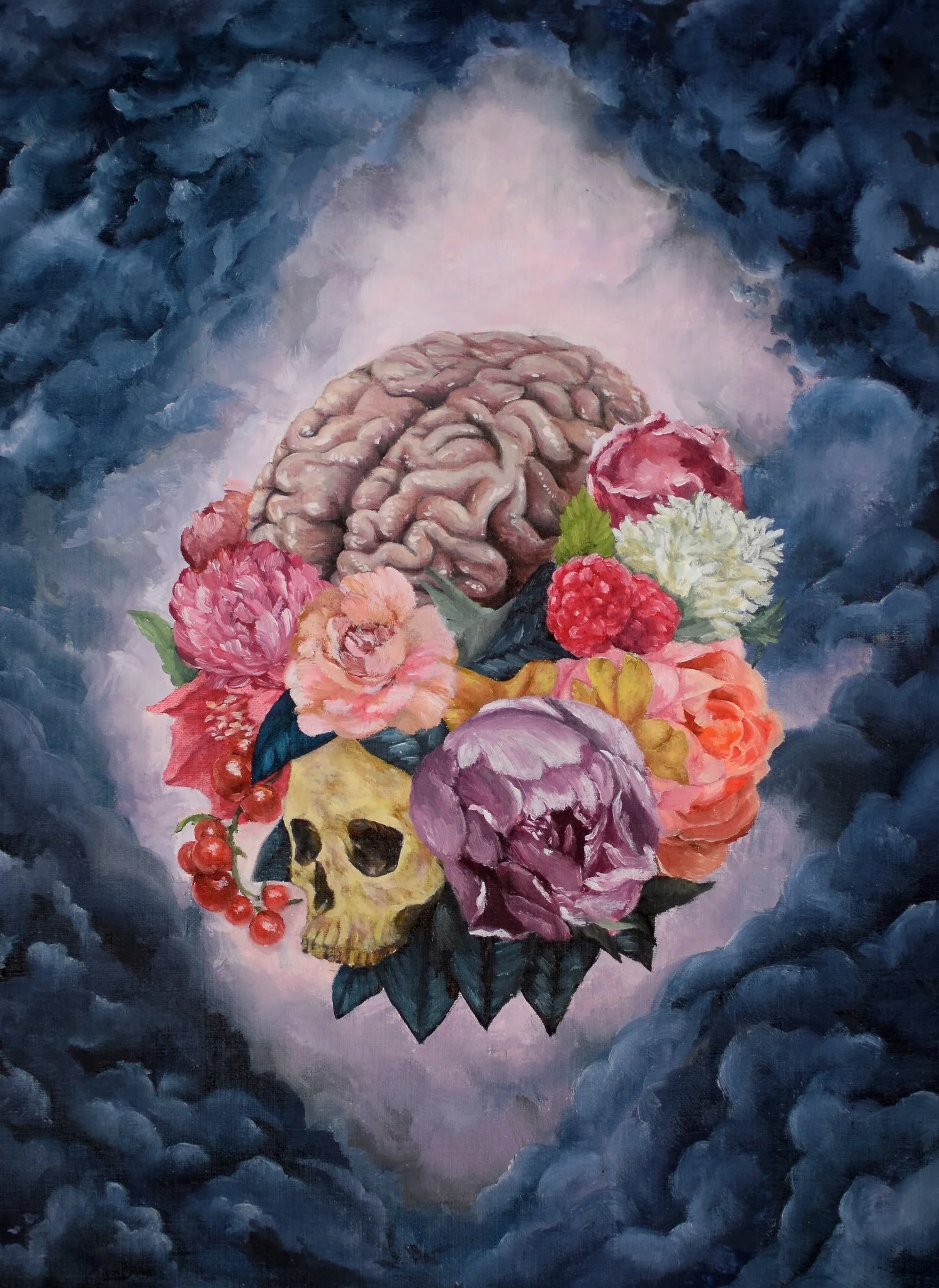 Selected works made with traditional media such as oils, acrylic, watercolor paint, or pencils.
